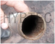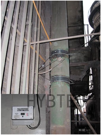 實施方案 經(jīng)多方咨詢考察,從技術(shù)、使用維護、費用等多方面考慮后,決定采用凈元廣譜感應(yīng)水處理器。于2005年6月18日在1#高爐冷卻系統(tǒng)外徑377mm主供水管道上安裝一套凈元。 效果評價 至9月18日運行3個月,通過水質(zhì)化驗及冷卻壁回水槽上加裝的掛片試驗,證明其有明顯防垢效果。安裝凈元后第一個月停加阻垢劑、新裝凈元剛運行時輸出電流設(shè)定為1325mA,掛片上有明顯結(jié)垢現(xiàn)象,隨后我們將輸出電流增大到2350mA,并增加一個新掛片;第二個月新增掛片無結(jié)垢,舊掛片上的垢開始減少;第三個月新增掛片無結(jié)垢,且舊掛片上的垢已消失。到12月為止所有掛片上沒有任何結(jié)垢現(xiàn)象,且原來冷卻壁回水管中的垢也逐漸消失。經(jīng)過以上實驗,證明該設(shè)備不僅能夠阻垢,而且還能除垢。(使用凈元前后回水管結(jié)垢情況對比見下圖A、圖B) 安裝凈元前,該1#高爐冷卻循環(huán)水系統(tǒng)的冷卻塔處,長期存在苔蘚,在夏季每個月,都要由工人用鏟子進行清除。安裝凈元后的這6個月里,苔蘚數(shù)量不但沒有增加,反而比以前少了,且再沒用人工清理苔蘚,表明凈元抑制菌藻效果很明顯。到06年12月凈元已連續(xù)運行18個月,運行良好。 |