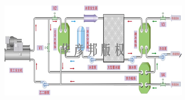 源(1-4°C) , 冷凍水系統(tǒng)或末端空氣系統(tǒng)均可采用大溫差形式 , 從而減少輸送系統(tǒng)的能耗和減少輸配系統(tǒng)的空間。